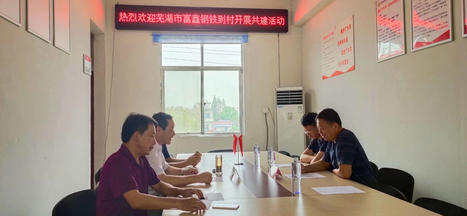 為深入貫徹落實(shí)習(xí)近平新時(shí)代中國特色社會(huì)主義思想和黨的十九大精神,全面落實(shí)上級黨委部署,推動(dòng)黨建引領(lǐng)經(jīng)營發(fā)展,2019年9月6日,蕪湖市富鑫鋼鐵有限公司黨委,工委本著“黨建引領(lǐng)、聯(lián)創(chuàng)共建”的原則,與扶貧村委--無為縣白湖村總支部開展“共建、共享、共進(jìn)”主題活動(dòng),雙方并就今后“特色農(nóng)產(chǎn)品種植、扶貧幫困”等事項(xiàng)進(jìn)行了具體磋商與交流。